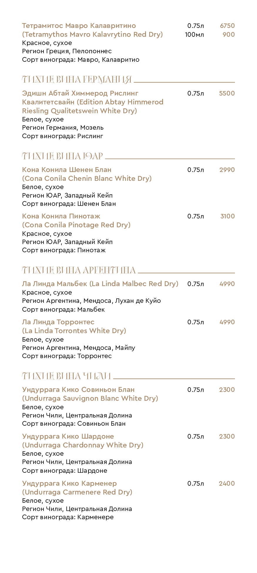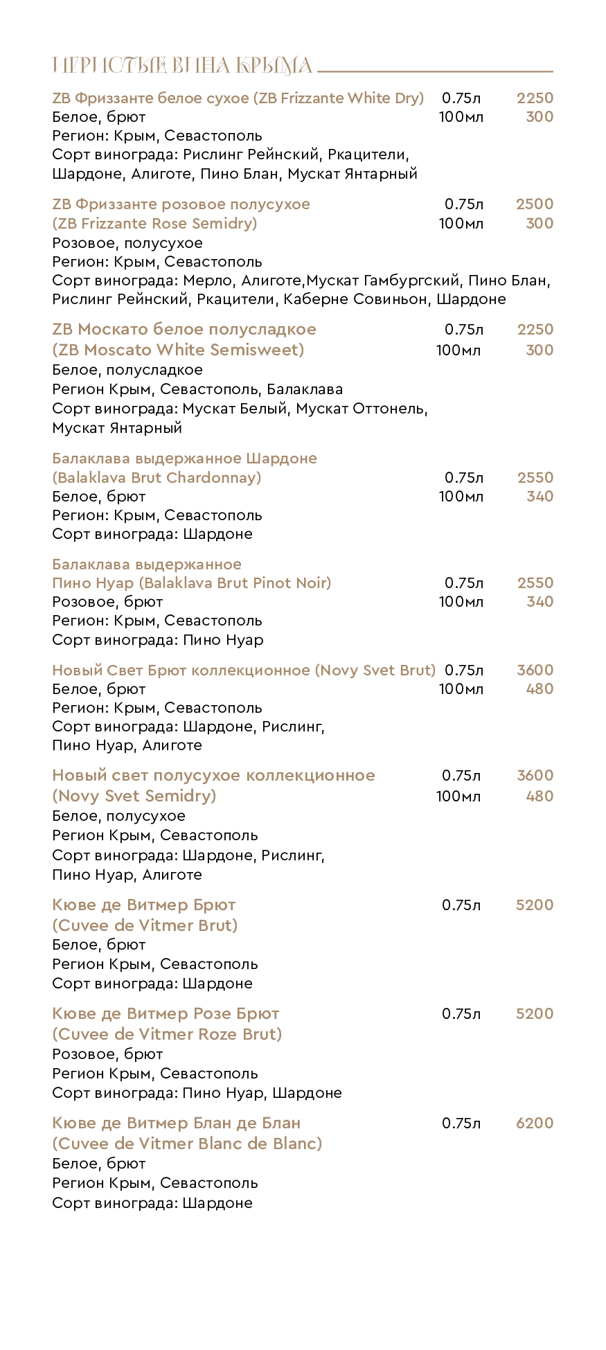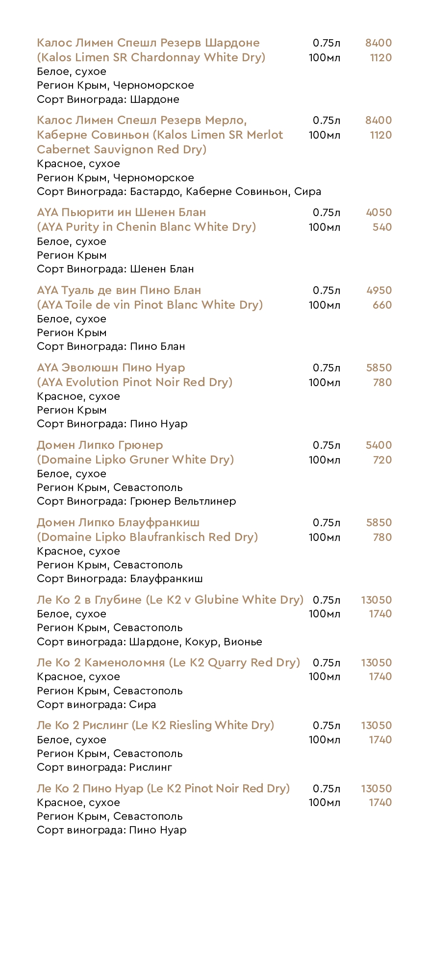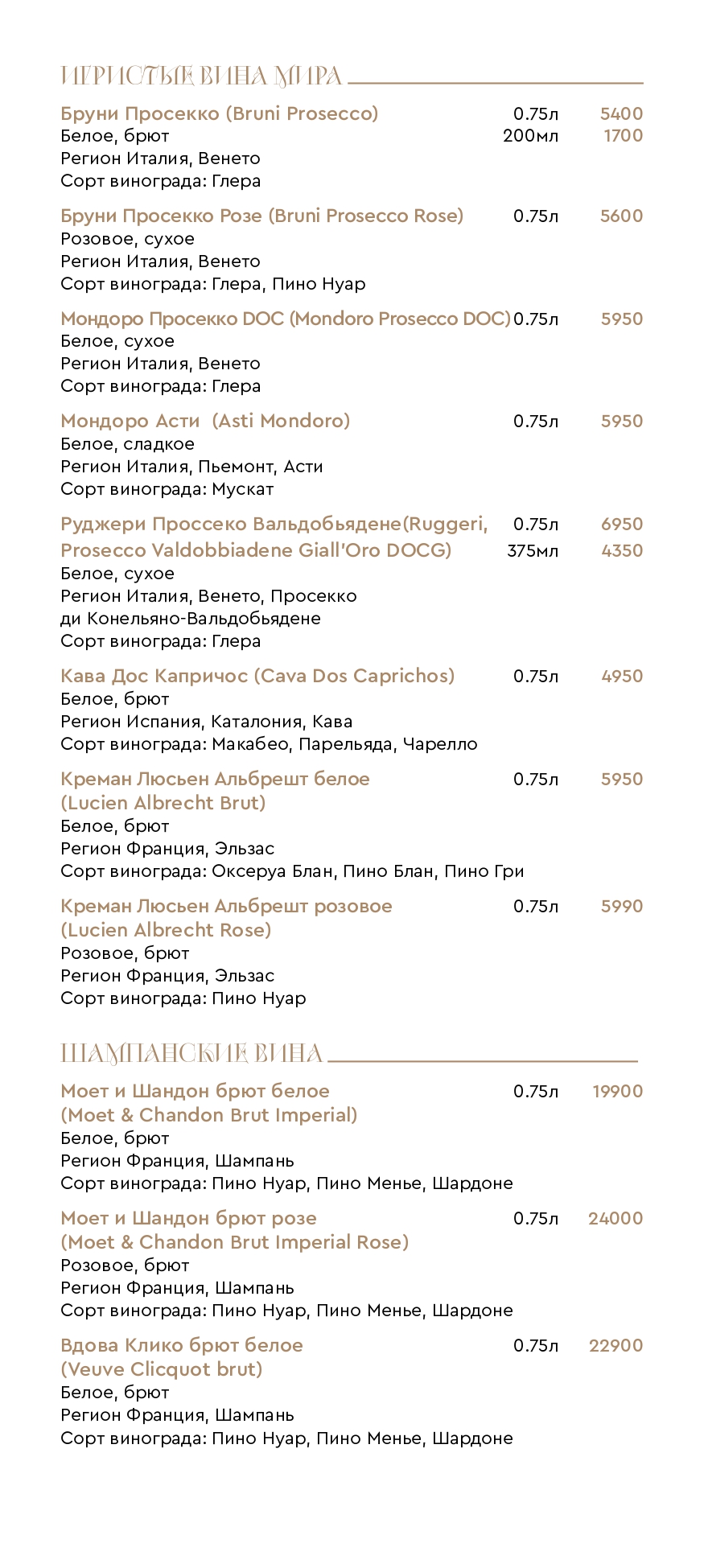 Цены на меню